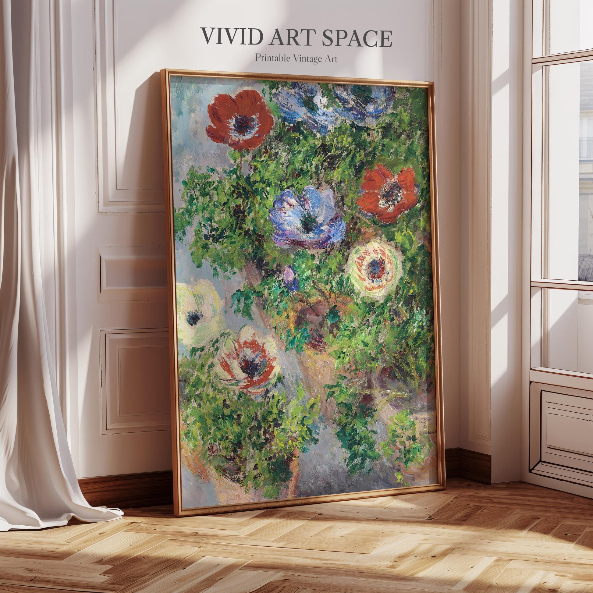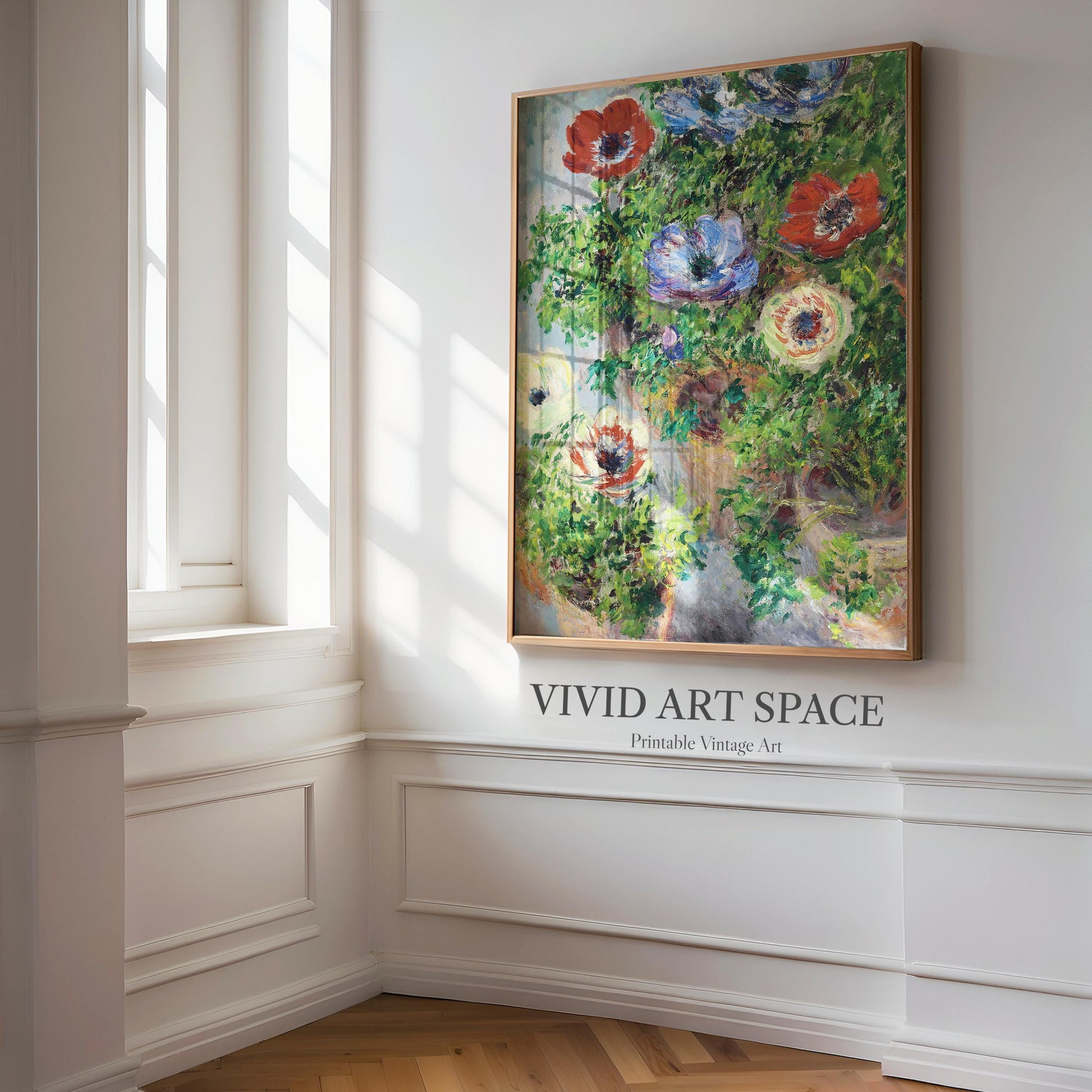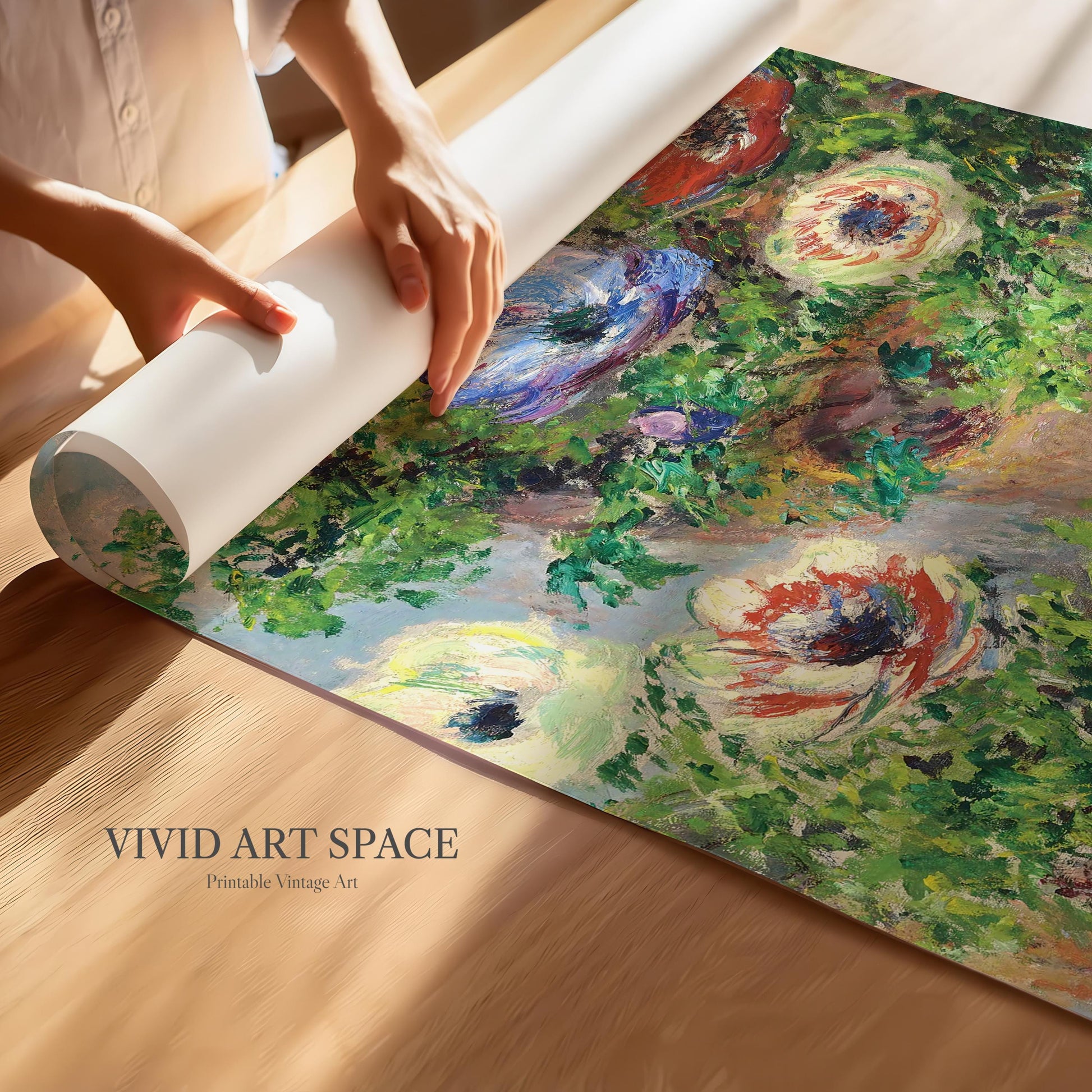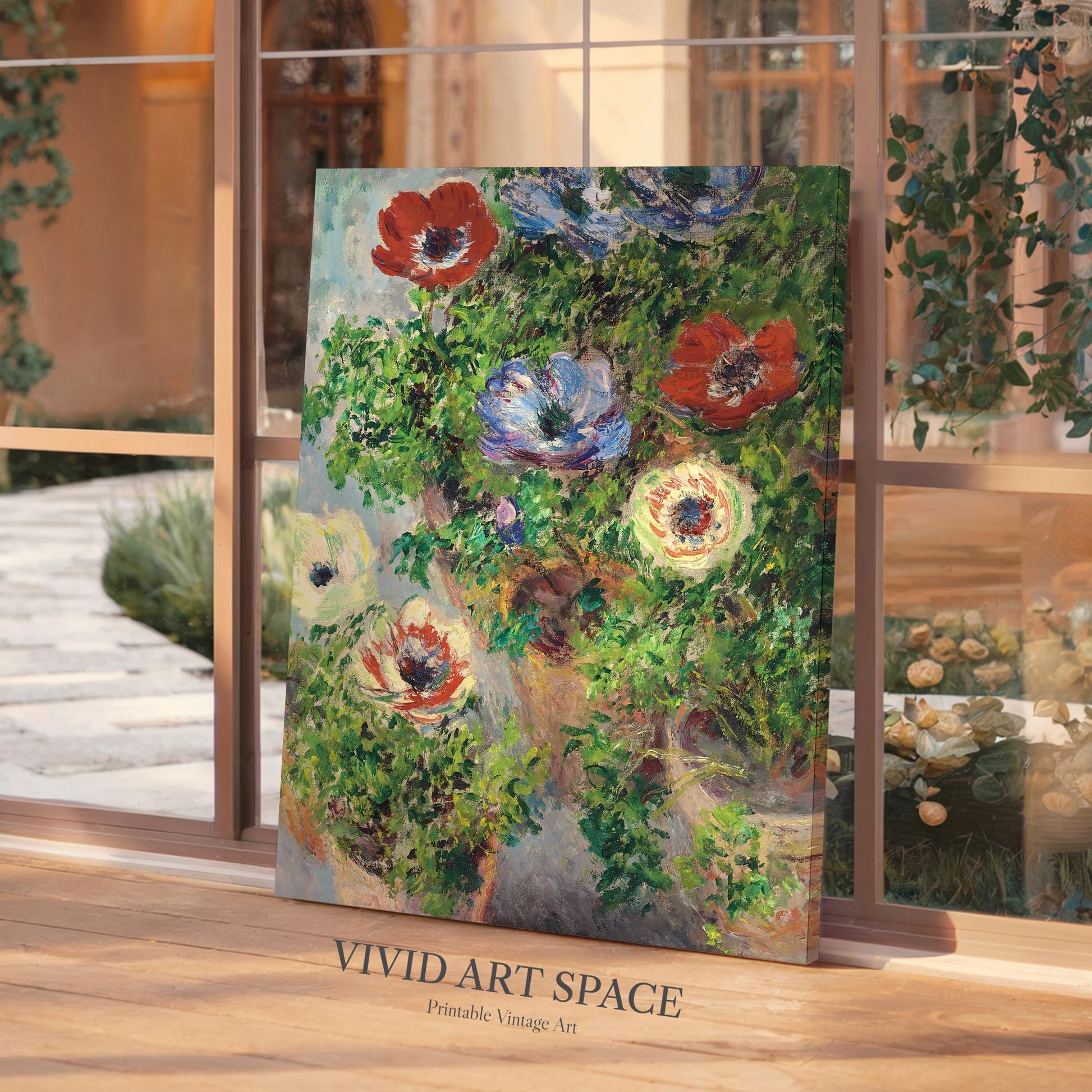 This print features Anemones in Pot, an 1885 oil painting by renowned French Impressionist painter Claude Monet. It is available on archival-grade, acid-free fine art paper or canvas. We offer a variety of size options, and shipping is free within the U.S.