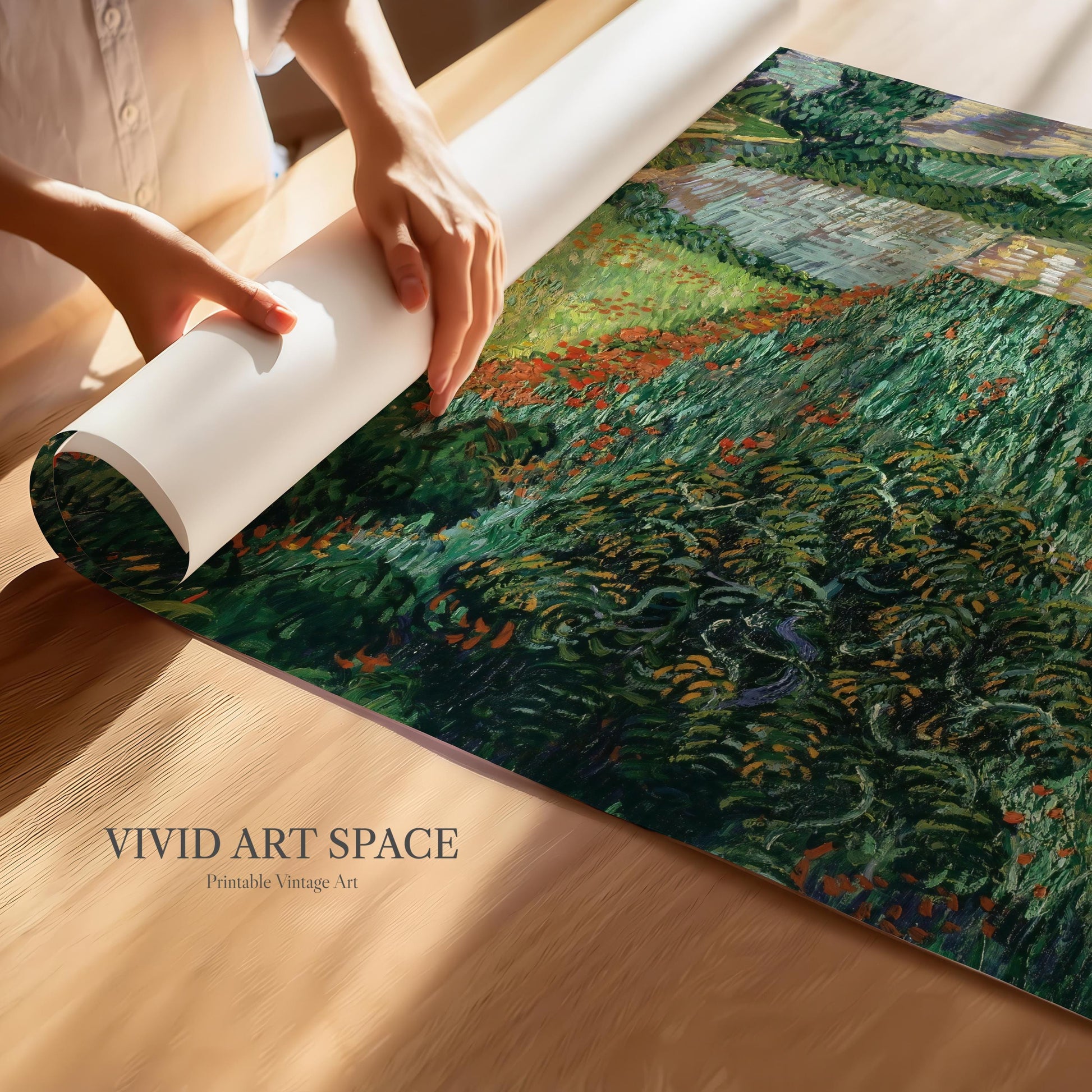 This print features Field with Poppies, an 1889 oil painting by renowned Dutch Post-Impressionist artist Vincent van Gogh. It is available on archival-grade, acid-free fine art paper or canvas. We offer a variety of size options, and shipping is free within the U.S.
