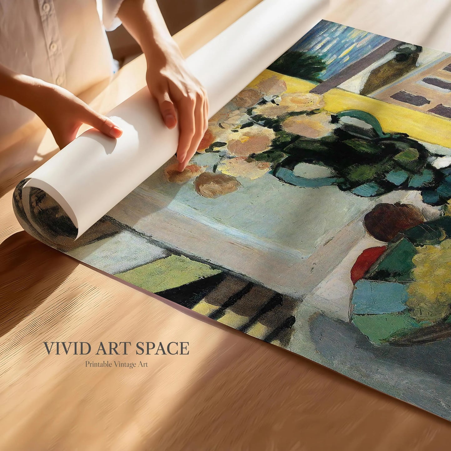 This print features Flowers in front of a Window, a 1922 oil painting by renowned French Fauvist and Modernist artist Henri Matisse. It is available on archival-grade, acid-free fine art paper or canvas. We offer a variety of size options, and shipping is free within the U.S.