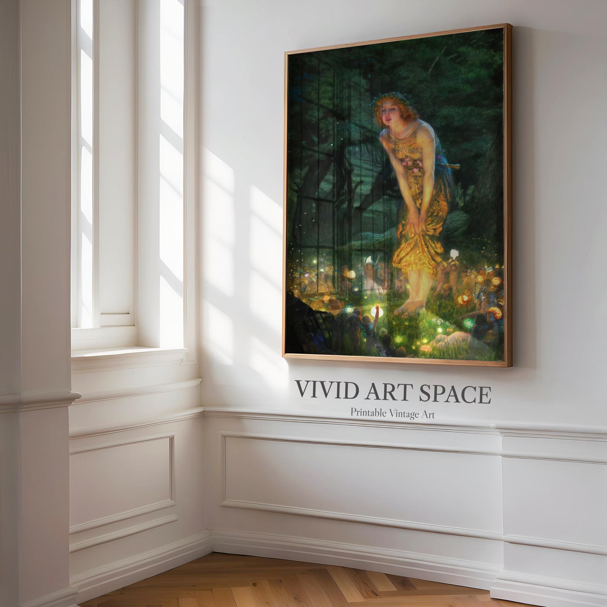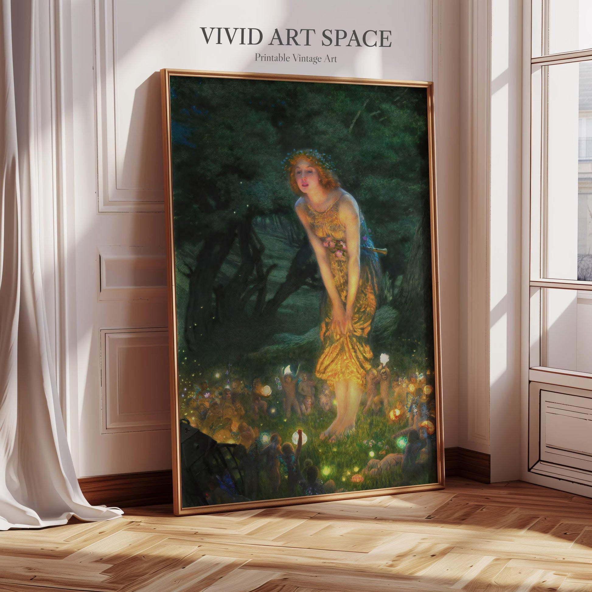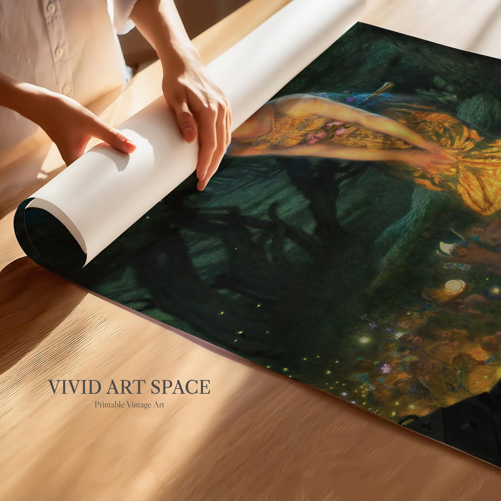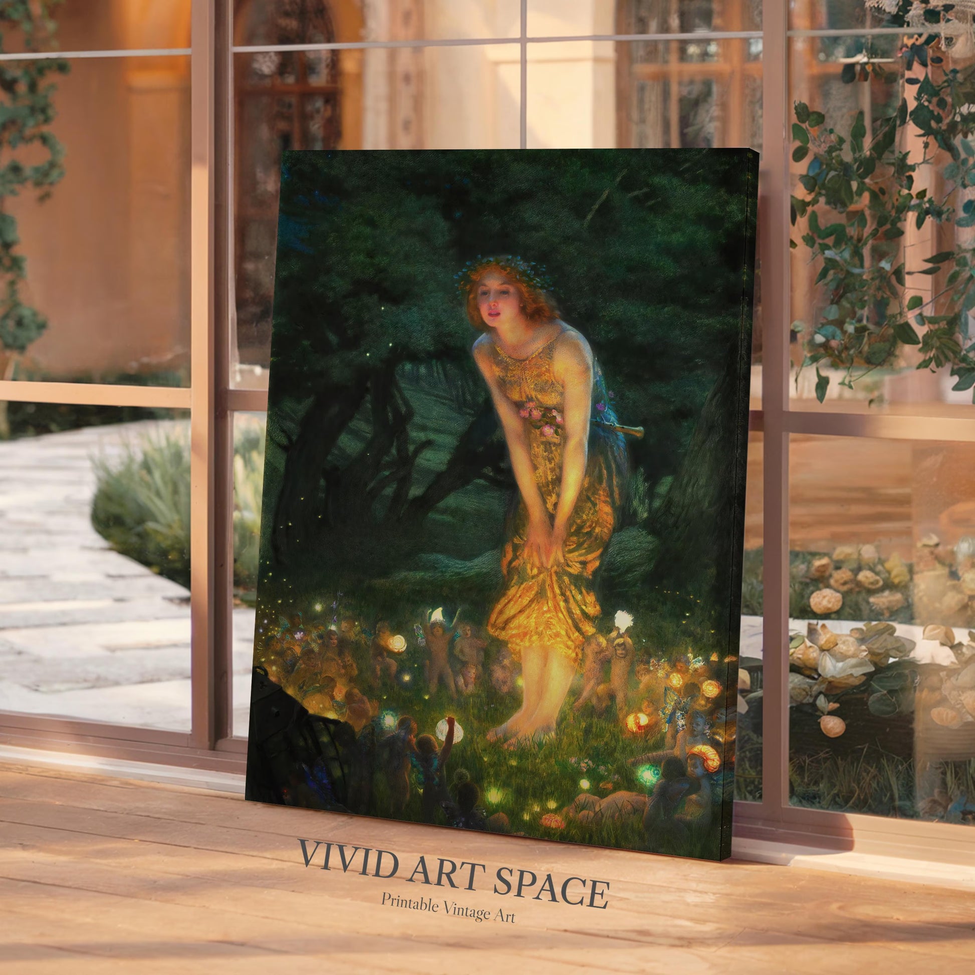 This print features Midsummer Eve, a 1908 oil painting by British Pre-Raphaelite painter Edward Robert Hughes. It is available on archival-grade, acid-free fine art paper or canvas. We offer a variety of size options, and shipping is free within the U.S.