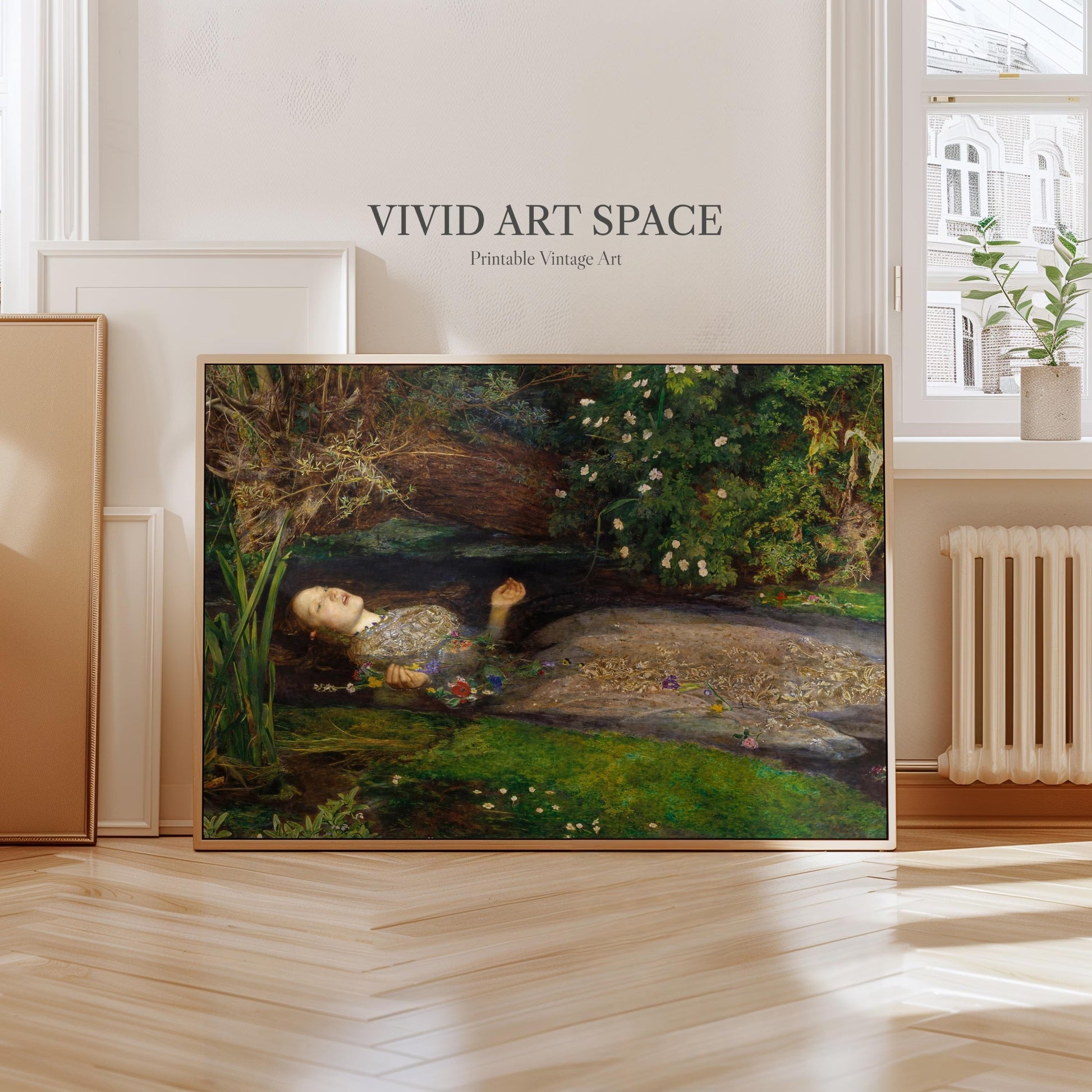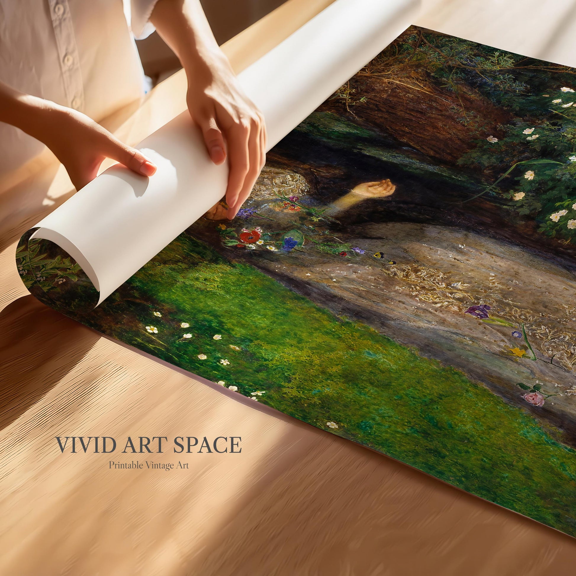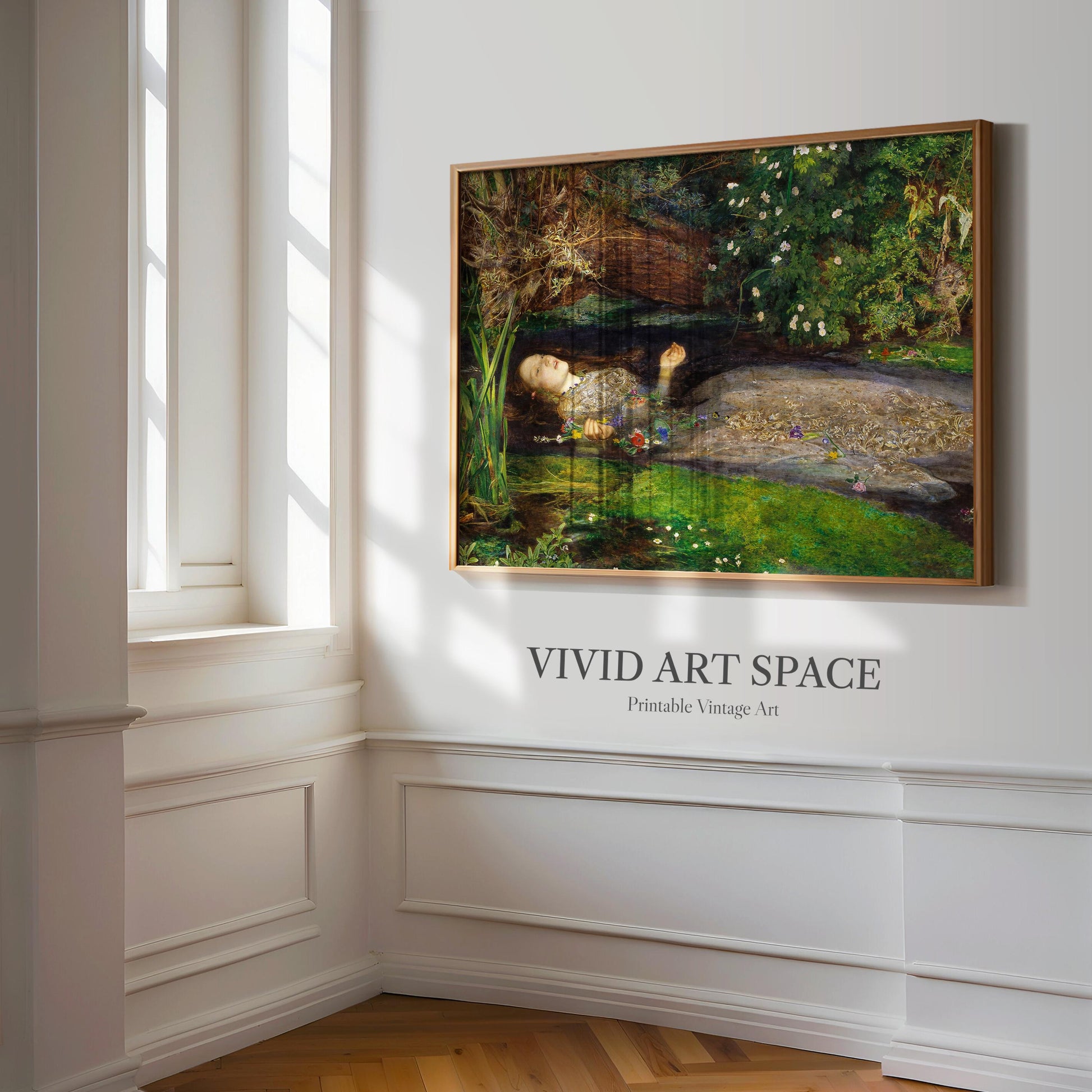 This print features Ophelia, a 1852 oil painting by British Pre-Raphaelite artist John Everett Millais. It is available on archival-grade, acid-free fine art paper or canvas. We offer a variety of size options, and shipping is free within the U.S.
