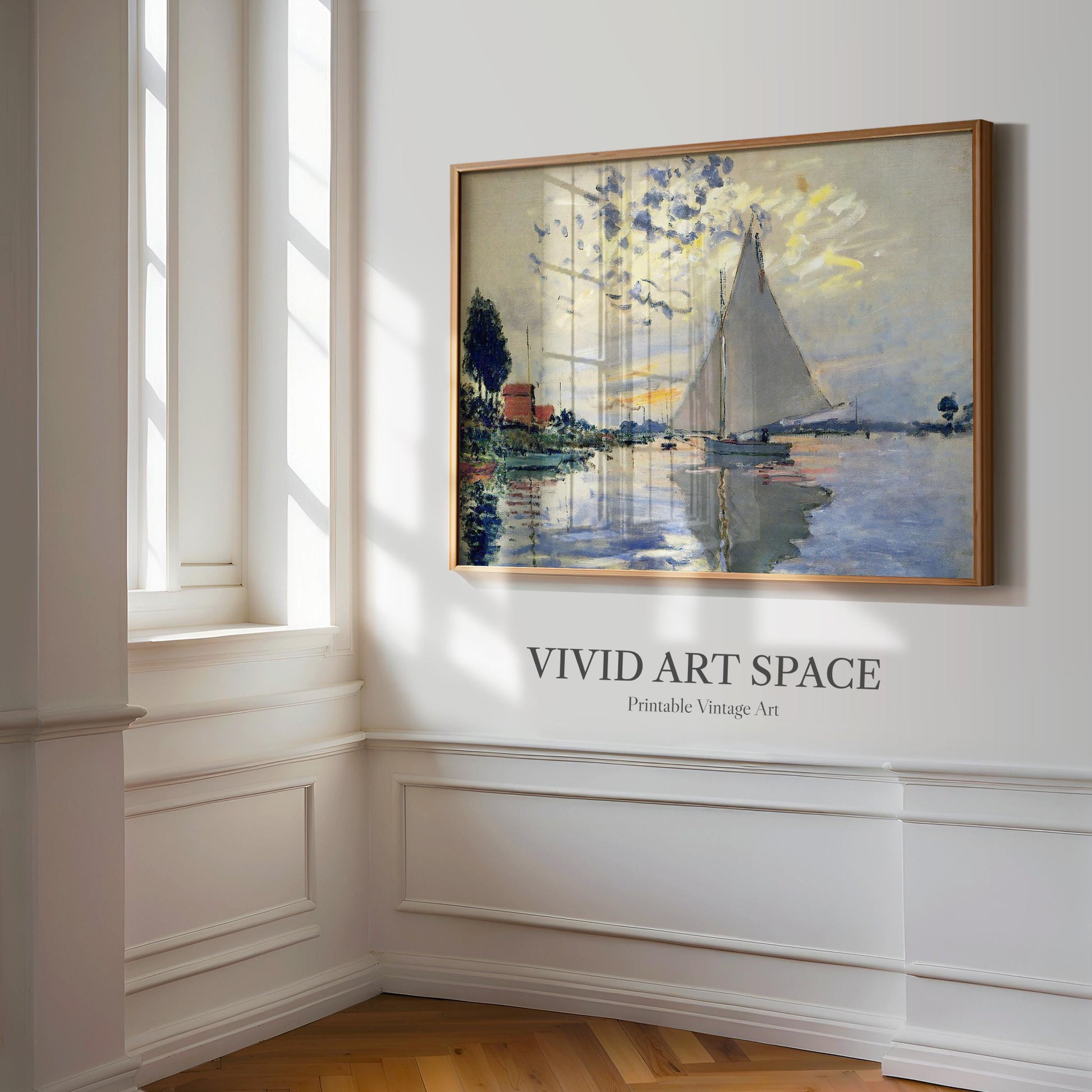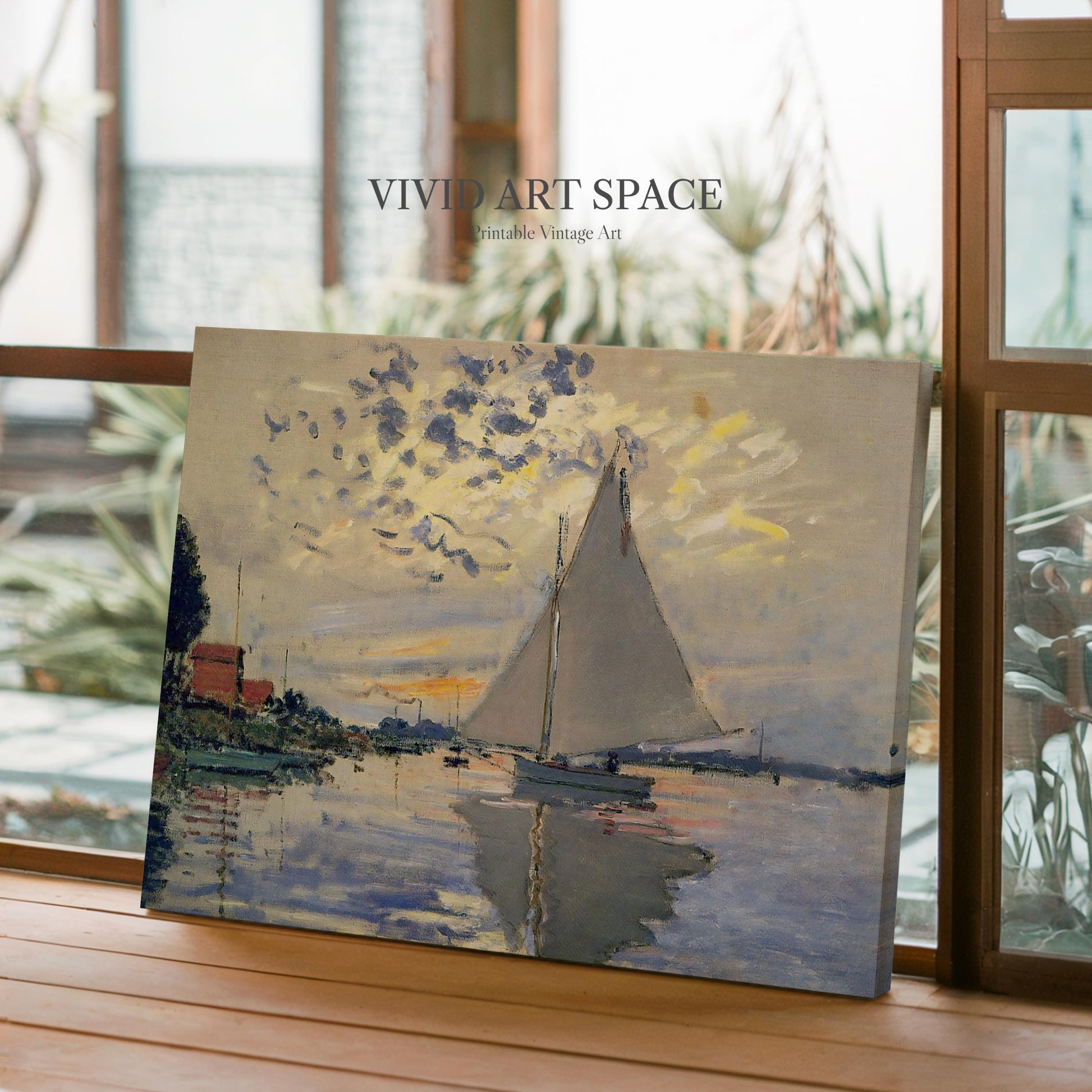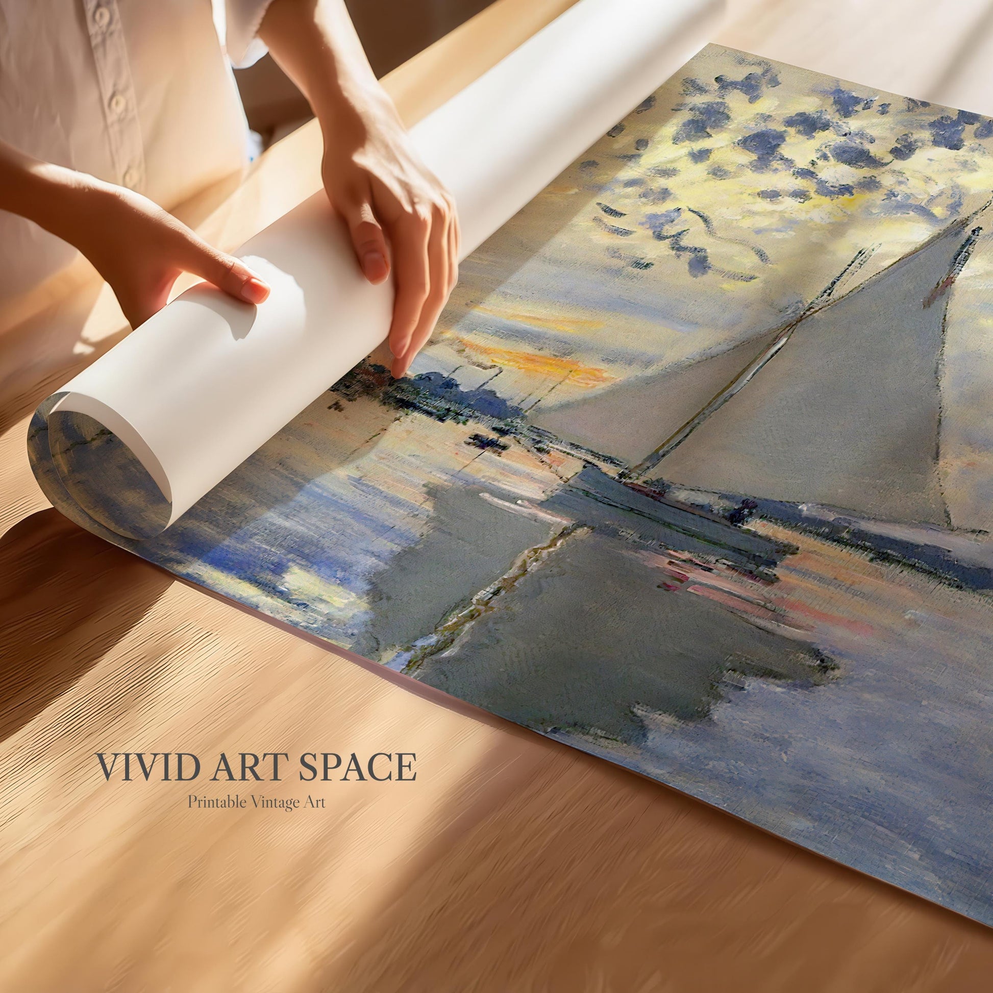 This print features Sailboat at Le Petit Gennevilliers, an 1874 oil painting by renowned French Impressionist painter Claude Monet. It is available on archival-grade, acid-free fine art paper or canvas. We offer a variety of size options, and shipping is free within the U.S.