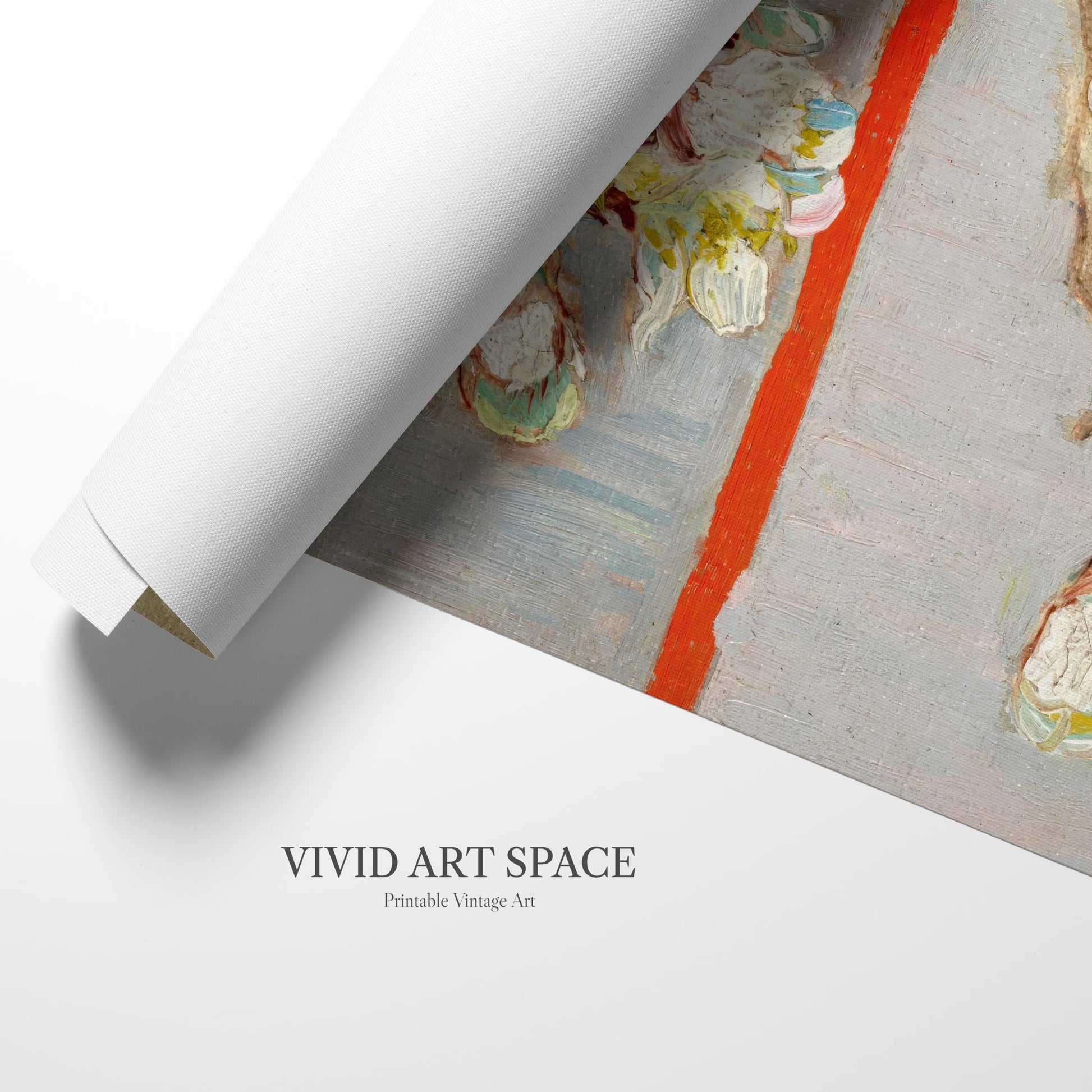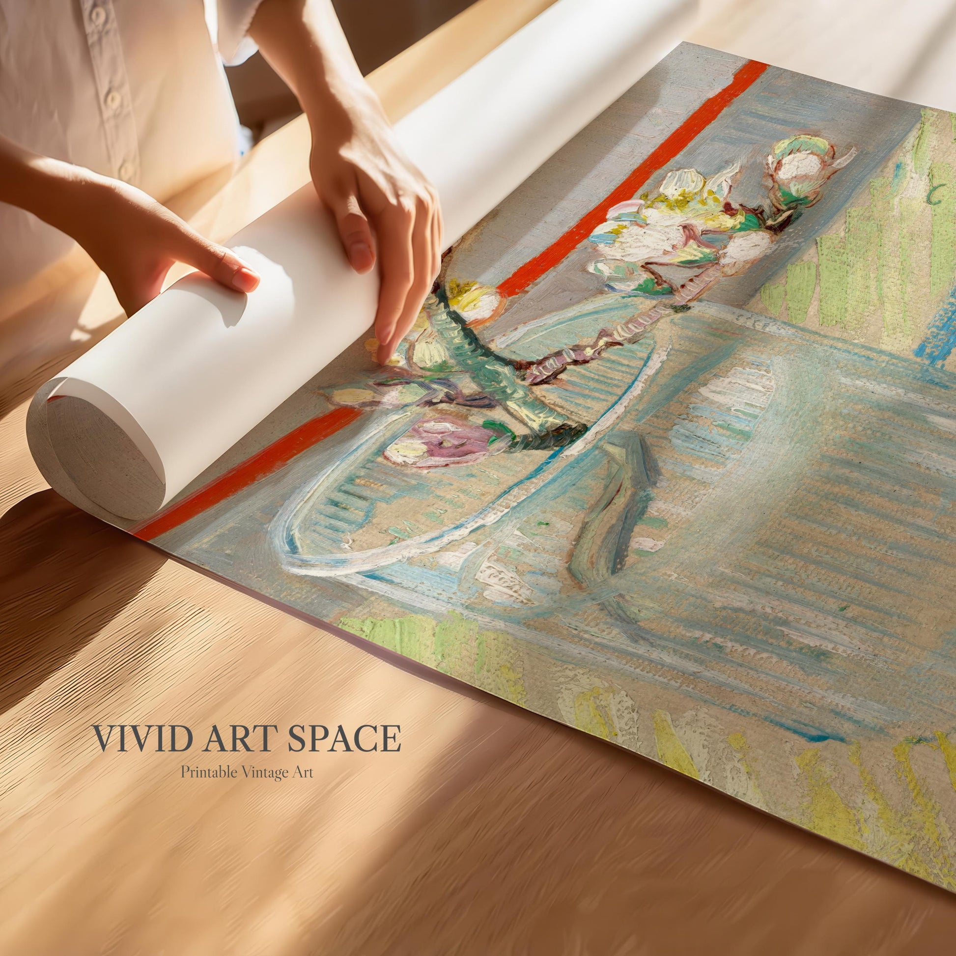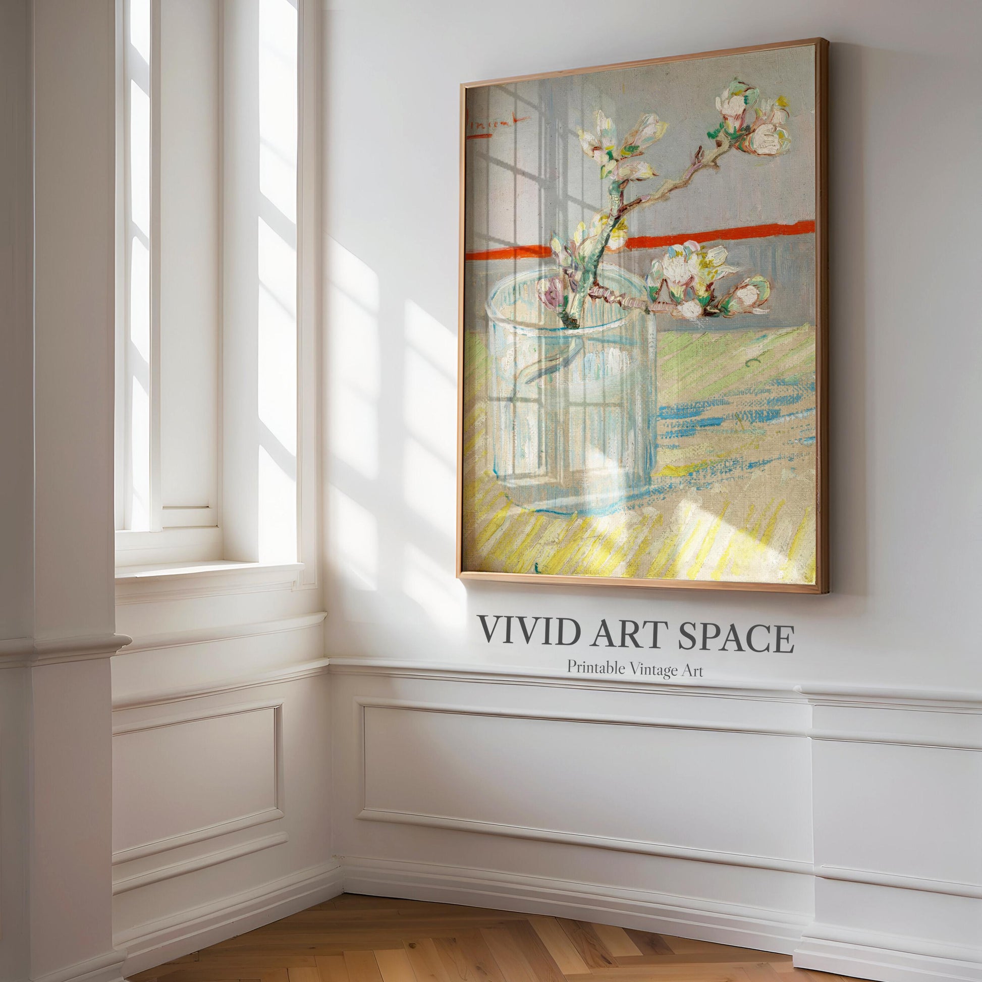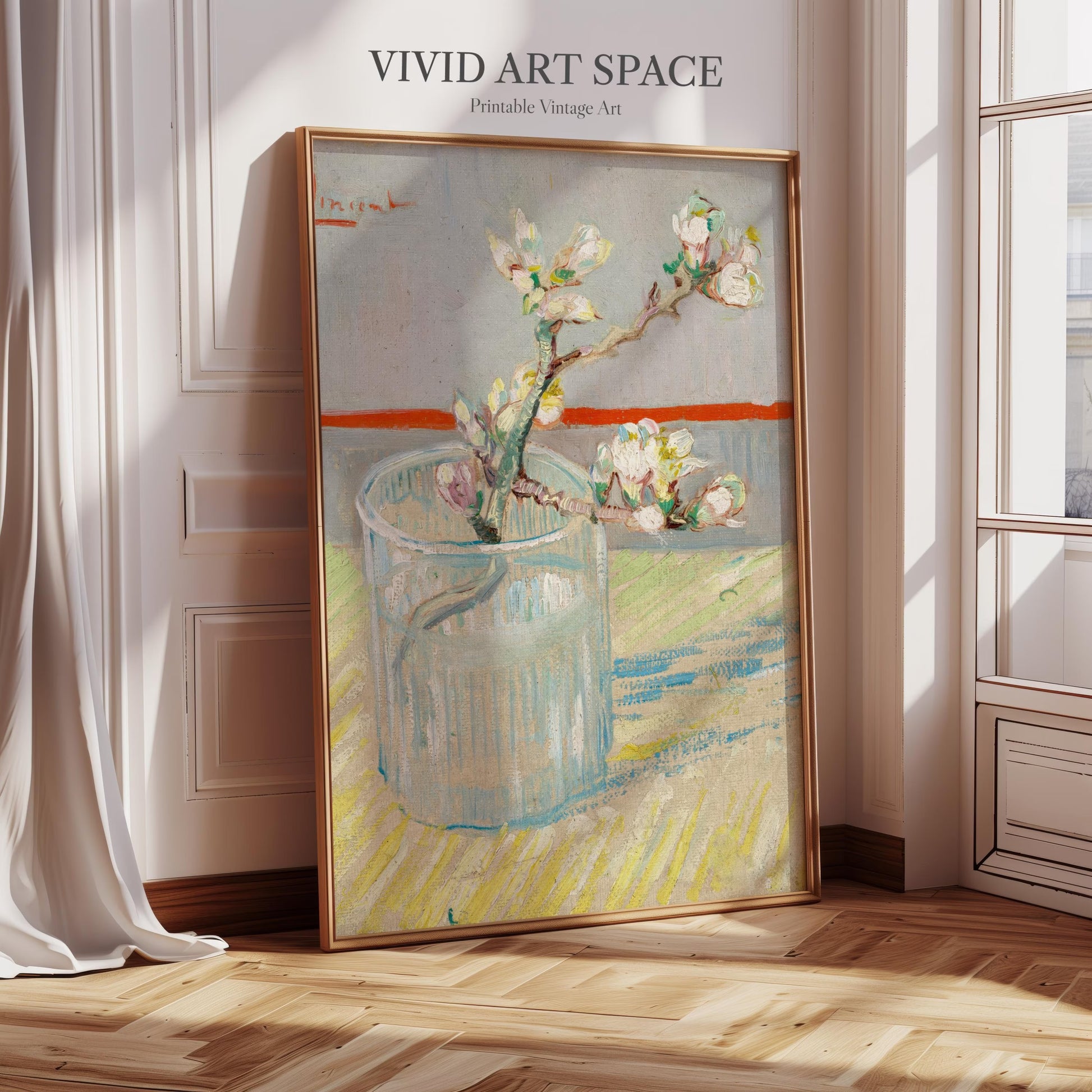 This print features Sprig of Flowering Almond in a Glass, an 1888 oil painting by renowned Dutch Post-Impressionist artist Vincent van Gogh. It is available on archival-grade, acid-free fine art paper or canvas. We offer a variety of size options, and shipping is free within the U.S.