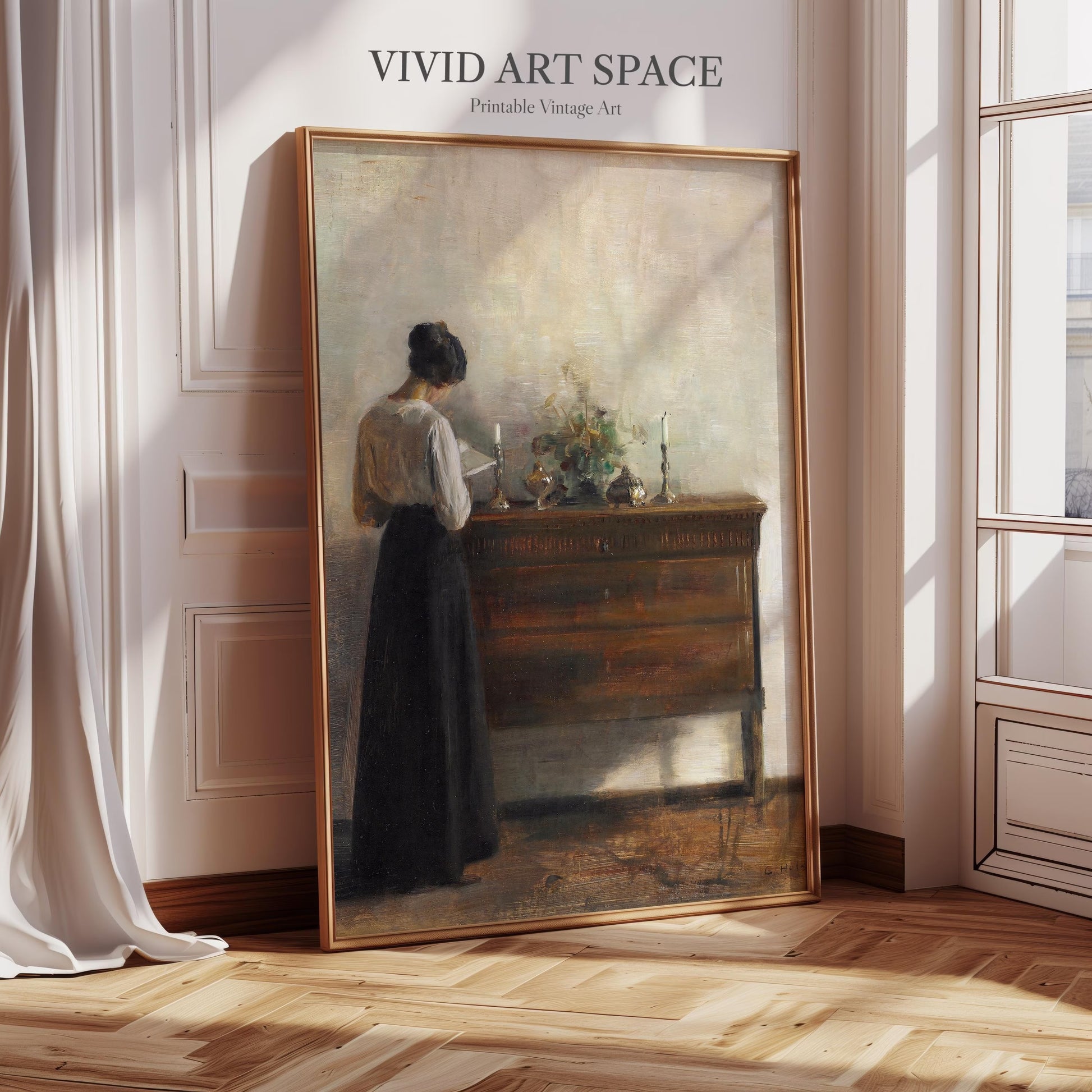 This print features The Artist's Wife, a 1904 oil painting by Danish Realist artist Carl Holsøe. It is available on archival-grade, acid-free fine art paper or canvas. We offer a variety of size options, and shipping is free within the U.S.