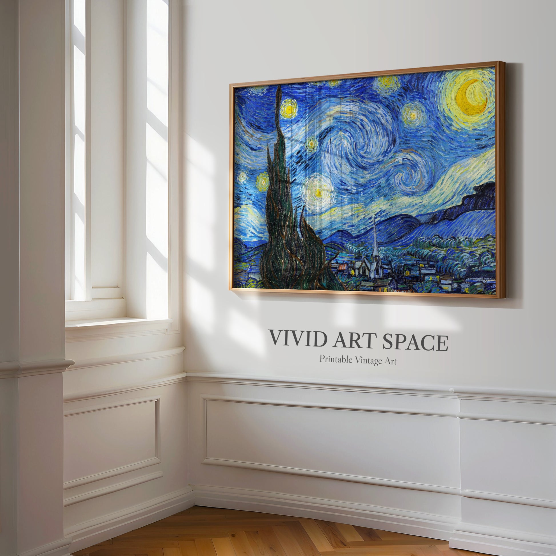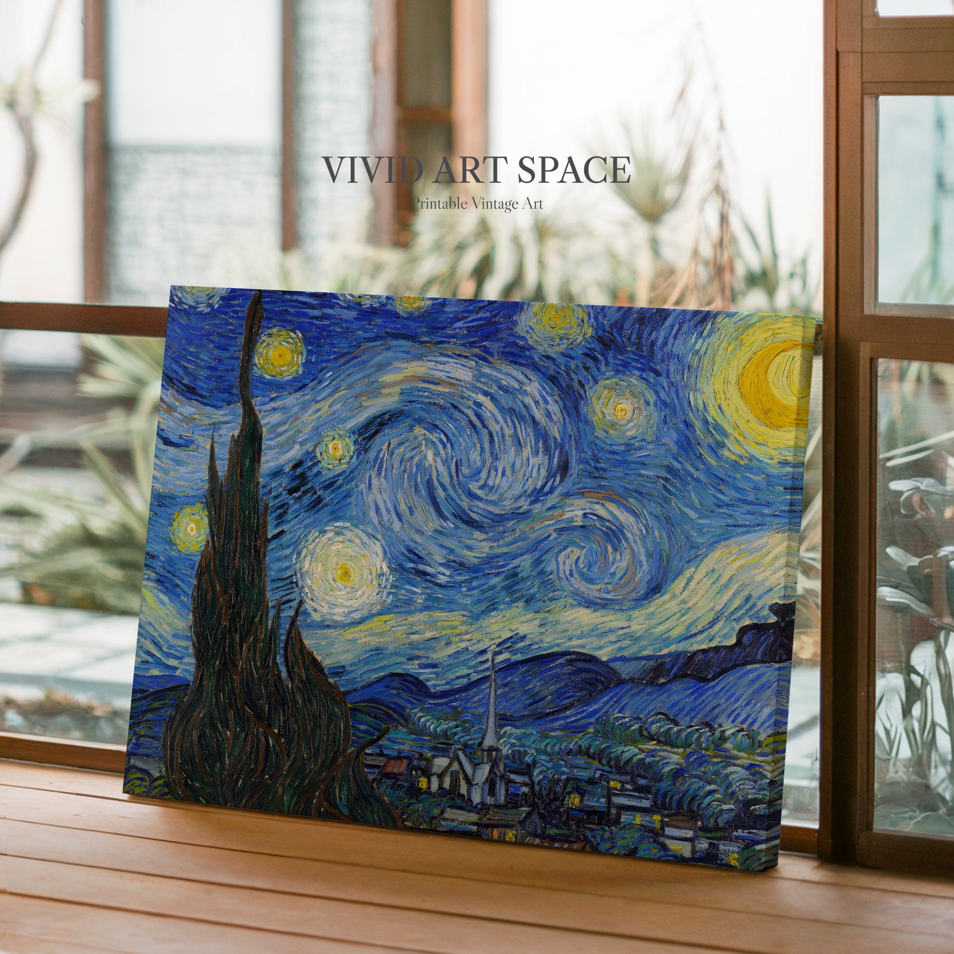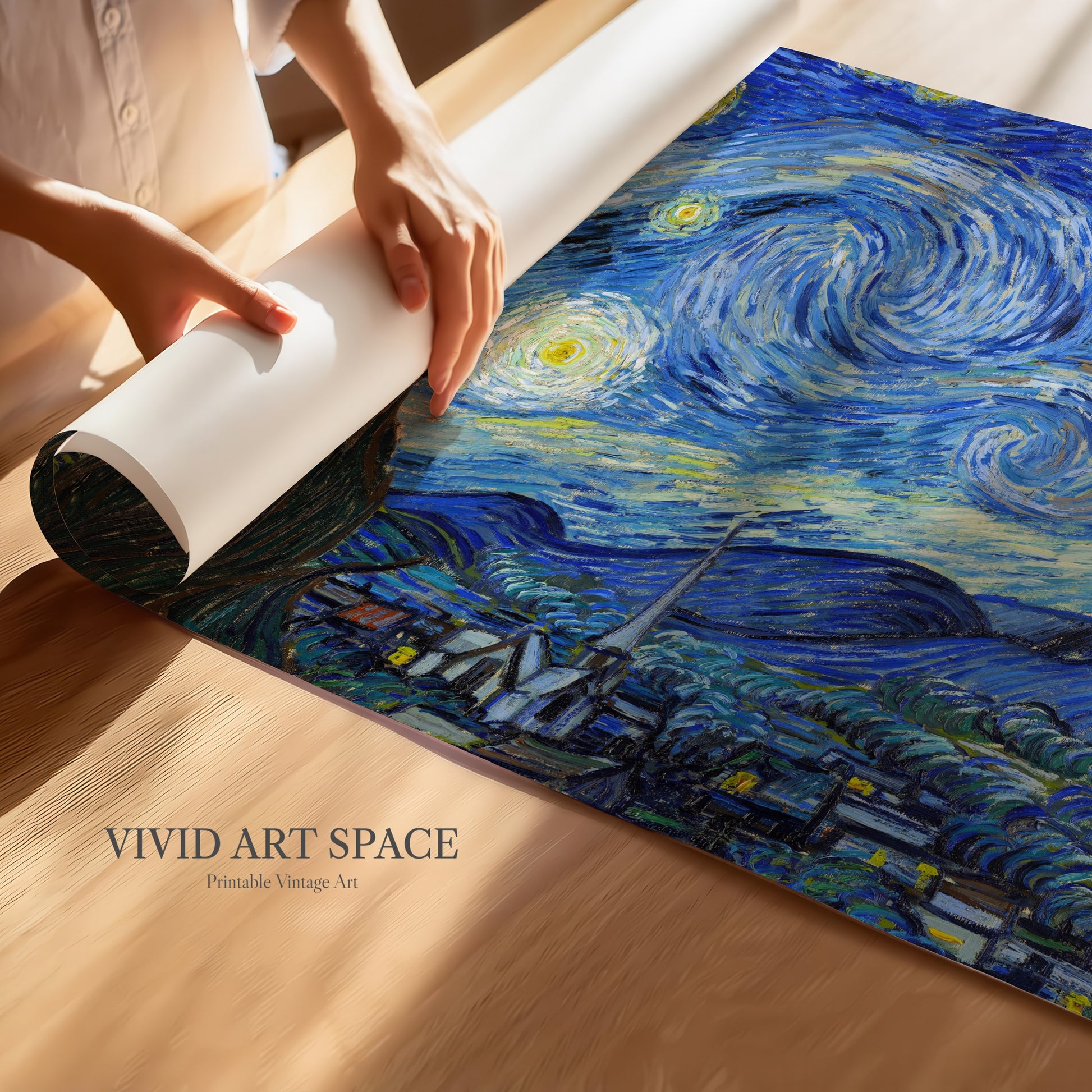This print features The Starry Night, a 1905 oil painting by renowned Dutch Post-Impressionist artist Vincent van Gogh. Available on archival-grade, acid-free fine art paper or canvas. We offer various size options, and shipping is free within the U.S.
